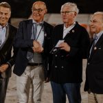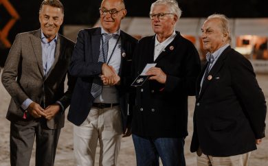 Hans-Jürgen Meyer (2.v.r.), Präsidenten des FORS Förderkreis Olympische Reiterspiele, hat beim Turnier der Sieger in Münster das Reiterkreuz in Silber von FN-Präsidiumsmitglied und Vizepräsident des Westf. Reitervereins, Rechtsanwalt Michael Klimke (2.v.l.) überreicht bekommen. Laudat